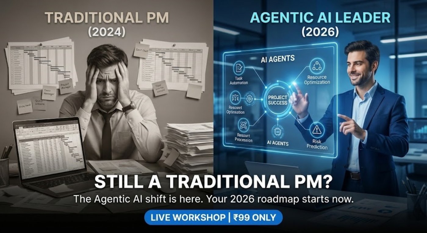 A focused 2-hour live session for experienced Project Managers who want clarity, confidence, and a structured roadmap to transition toward AI-native PM and leadership roles in 2026.