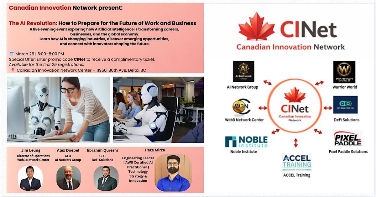 During the event, we will also highlight the role of the Canadian Innovation Network (CINet) and how being part of a collaborative innovation community can help individuals and businesses stay informed, connected, and prepared for the rapidly evolving technology landscape.