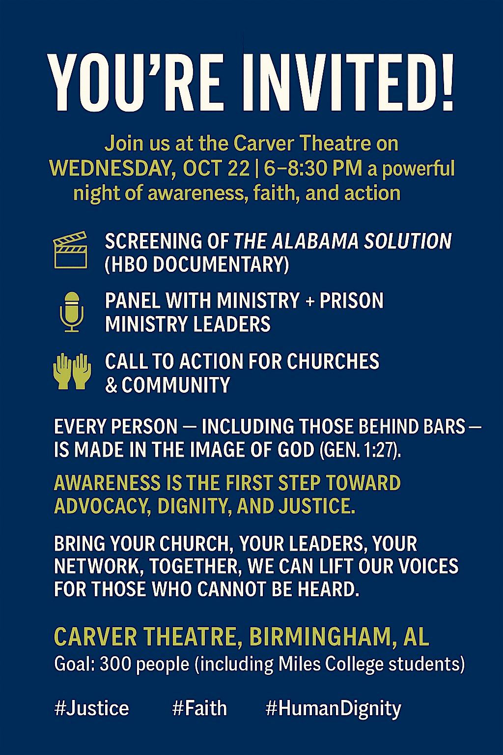 Join us and many community partners for an exciting event at the Carver Theatre for the Performing Arts where we will explore innovative solutions to pressing issues facing Alabama. This in-person gathering will feature engaging discussions, insightful speakers, and networking opportunities. Don't miss this chance to be a part of the conversation and help shape the future of our state. See you there!