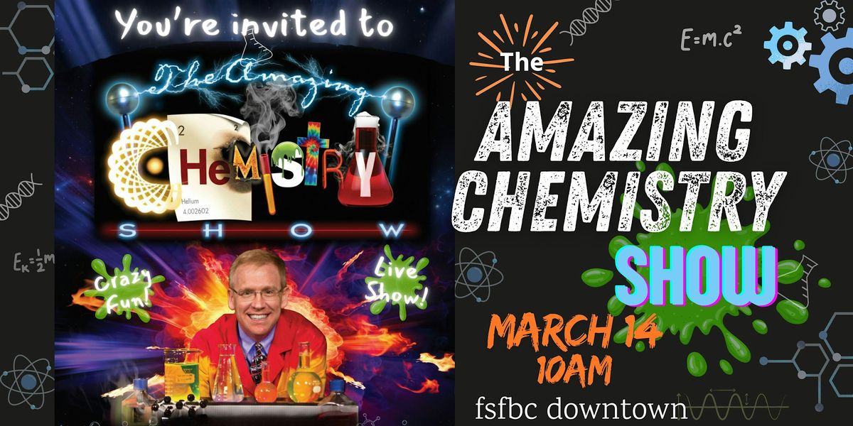 “The Amazing Chemistry show uses dramatic and exciting scientific effects in a fun way that’s entertaining for the whole family. We’re very happy to host this free show and science experience for families across the River Valley,” said Eli Leslie, Children’s Pastor at First Baptist Church Fort Smith.