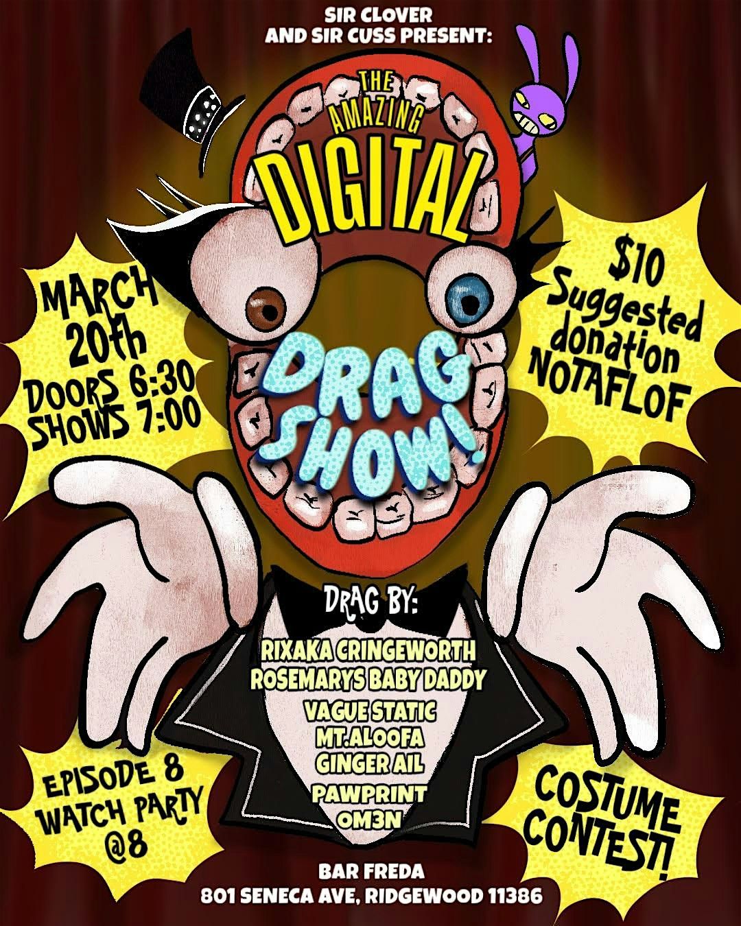 Welcome, NPCs, to the Amazing Digital Drag Show! Enjoy a night of TADC inspired drag performances, followed by an Episode 8 watch party!Agenda