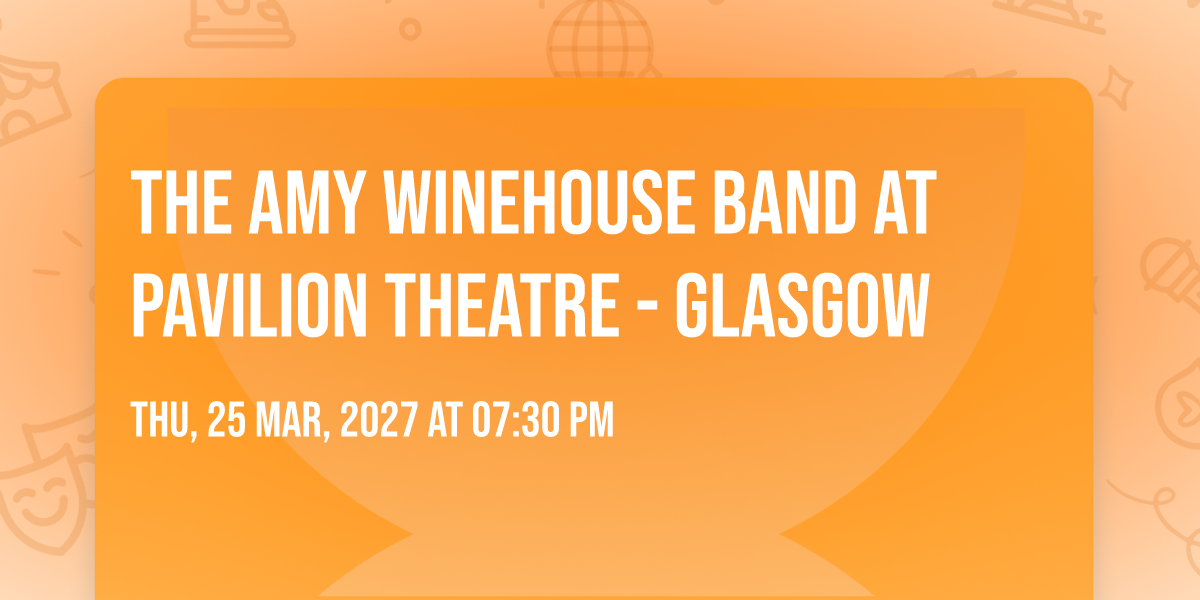 🌟 Step into a world of wonder at The Amy Winehouse Band at Pavilion Theatre - Glasgow, where extraordinary moments await! 🏛️ Located at Pavilion Theatre - Glasgow in dynamic Glasgow, SC, this event will become the talk of the town. 📅 Join us on March 25th, 2027 at 07:30 PM for a celebration that defies the ordinary. ✨ This curated experience brings together the best of entertainment, culture, and community spirit. Every detail has been thoughtfully planned to ensure an unforgettable experience for all our guests. 🎯 Take advantage of this opportunity to be part of something special. 🎊 Early registration is recommended as space is limited!