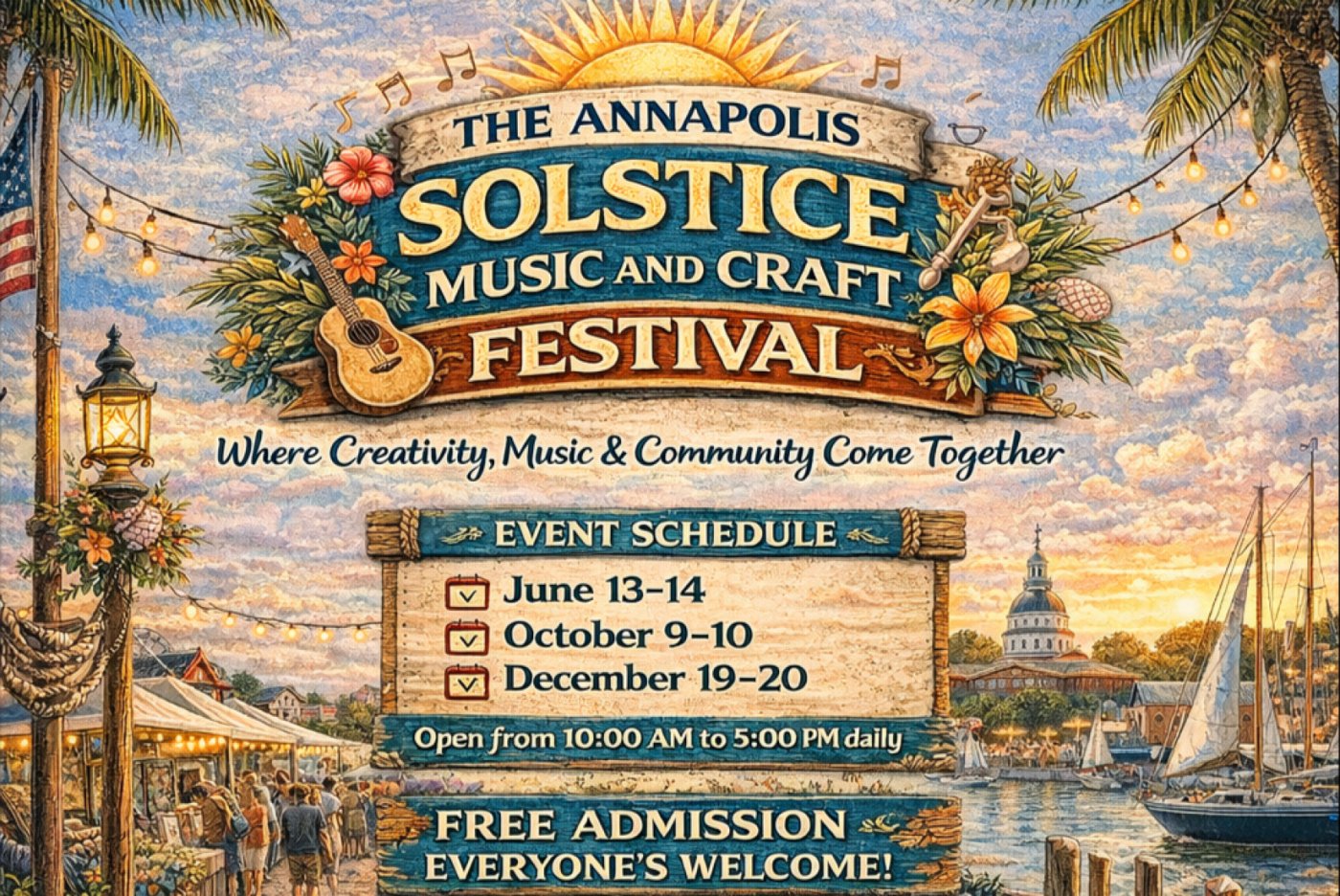 Come out and enjoy a weekend full of music, handcrafted treasures, delicious food, and a deep sense of Maryland community pride. Whether you're a longtime Annapolis resident, a day-tripper from Baltimore or Washington D.C., or a traveler discovering the Chesapeake for the first time, The Annapolis Solstice Music and Craft Festival is an event you won't want to miss.
