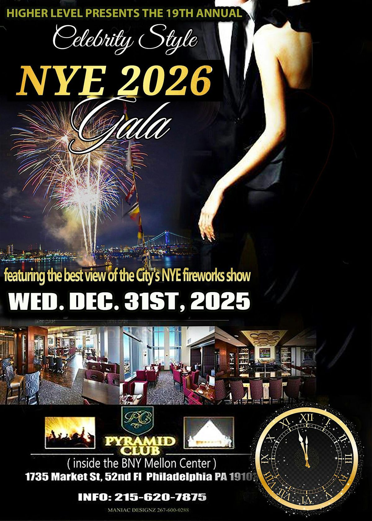 Enjoy the Sexiest Atmosphere and Best Fireworks view in the city at Philadelphia's only NYE event 500ft above the city, Penthouse Style. Overlooking breath-taking landmarks, the Annual “Celebrity Style” New Year’s Eve Fireworks Gala is conveniently located in Center City at the Newly Renovated Pyramid Club, inside the BNY Mellon Center on the 52nd floor.