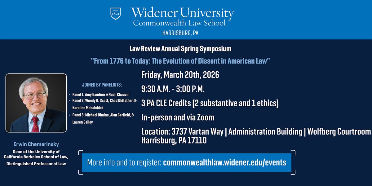 Via Zoom and at Widener University Commonwealth Law School, 3737 Vartan Way, Harrisburg, United States