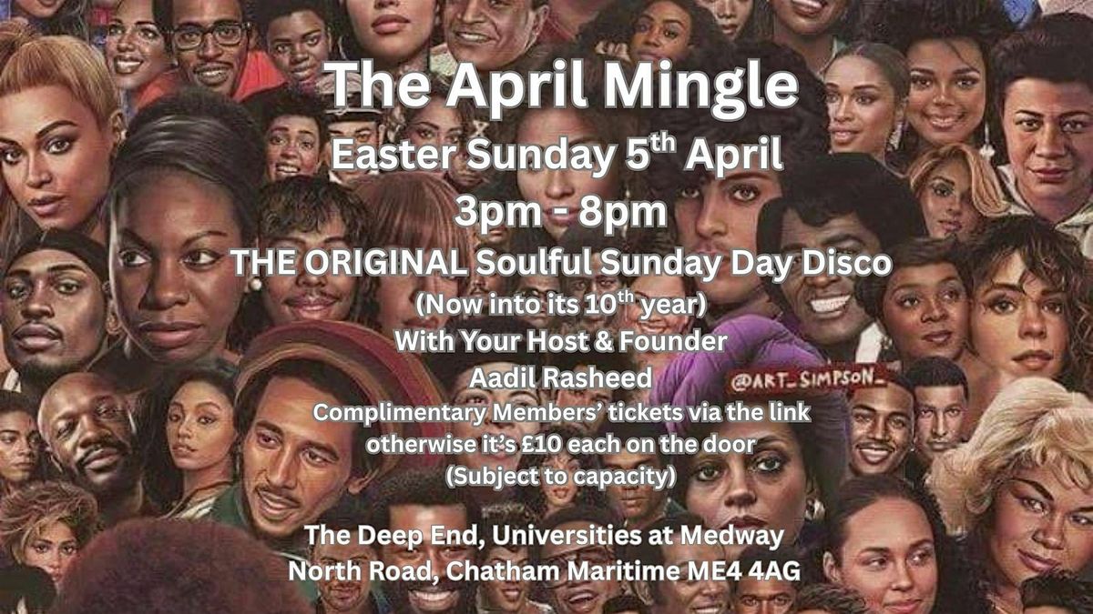 After the huge celebration of our 9th birthday in March, the world's original monthly daytime Soul music party returns on Easter Sunday 5th of April back at the Deep End within the Universities at Medway in Chatham Maritime from 3pm - 8pm Hosted as usual by the Founder Aadil Rasheed celebrating 45 years as a professional DJ this year!. Click on the link to get your complimentary Member's tickets otherwise it is £10 each on the door (subject to capacity). FREE PARKING ONSITE!!!