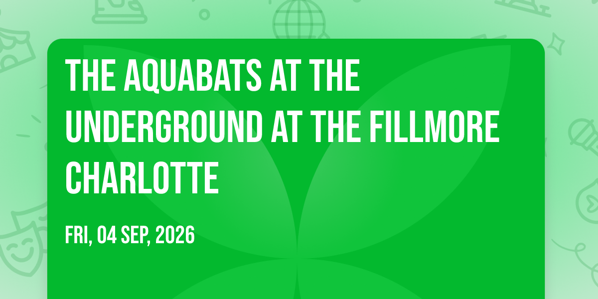 ✨ Discover the extraordinary at The Aquabats at The Underground at The Fillmore Charlotte, where magic meets reality in ways you've never imagined! 🏛️ Set in The Underground at The Fillmore Charlotte nestled in bustling Charlotte, NC, this event promises to be a landmark occasion. 📅 Taking place on September 4th, 2026 at 07:00 PM, it's going to create an atmosphere where every moment becomes a cherished memory. 🌟 Immerse yourself in an experience crafted with attention to every detail, designed to surprise and delight at every turn. They have worked tirelessly to ensure this event exceeds all expectations, bringing together elements of entertainment, innovation, and pure joy. 🎊 Don't miss your chance to be part of this remarkable journey!