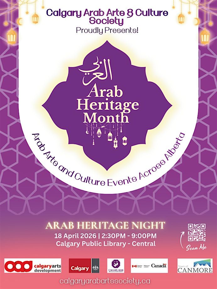 Beside the Calgary Arab Film Nights Festival, the Calgary Arab Arts & Culture Society has been celebrating the Arab Heritage Month since its designation. In its 4th year, the event has expanded to be an Arab Heritage Night, plus month-long and Alberta-wide activities exhibiting Arab arts & culture.