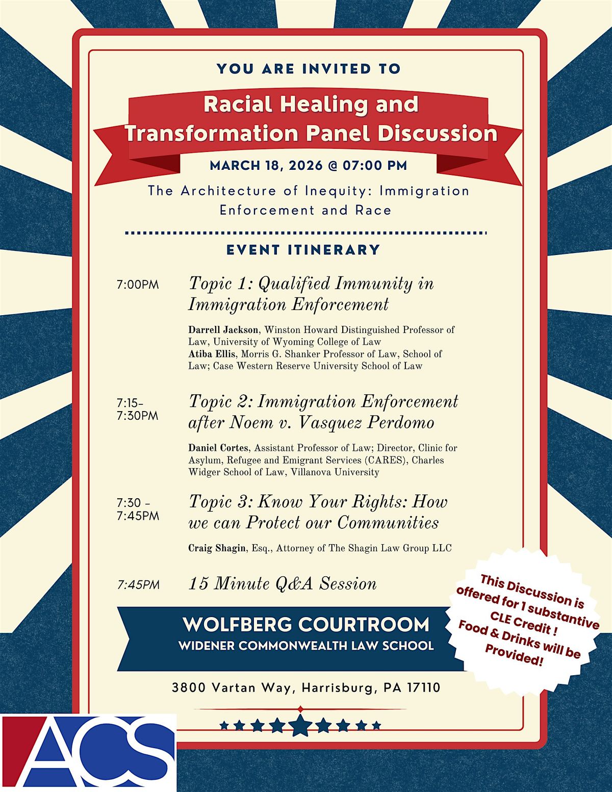 American Constitution Society of Widener Law Commonwealth Presents Racial Healing and Transformation Discussion
