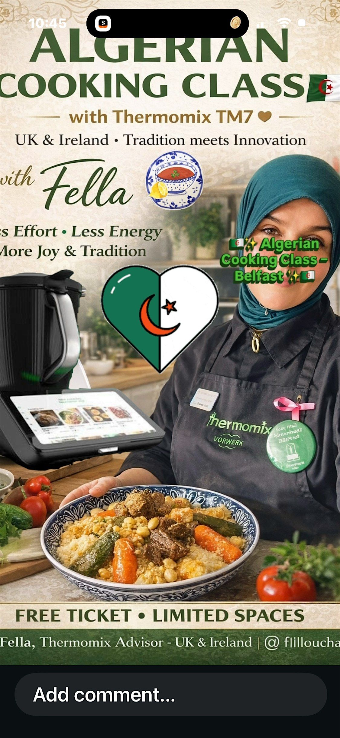 I’m so excited to invite you to our Algerian Cooking Class at the NEW Thermomix BELFAST Branch ?
