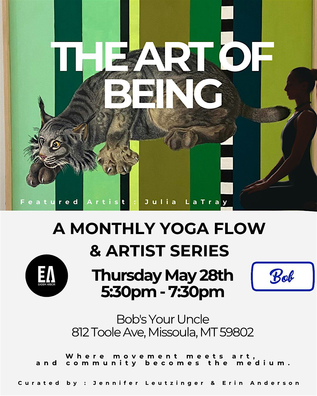 WHAT: 60-minute yoga flow led by Erin Anderson + 20-minute artist talk with Julia LaTray + Post Class Beverages