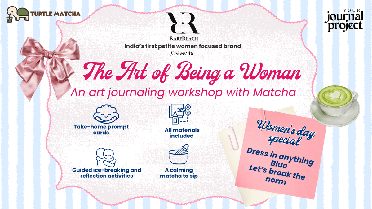 A morning of celebrating womanhood in the most artistic way possible. Not through perfection, not through pressure, but through expression.This Women’s Day, we gather to pause, reflect, and create pages that hold our stories, emotions, memories, and becoming. Through gentle art journaling prompts, quiet creative time, and heartfelt conversations, this space is designed to help you reconnect with yourself, the soft parts, the strong parts, and everything in between.No art skills required. Just your presence.Inclusions:* All art journaling materials (papers, stickers, tapes, pens, prompt sheets)* Guided ice-breaking and reflection activities* Curated prompt cards to take home and continue your journaling journey* A calming matcha to sip while you createThis is not a workshop where you learn to draw.This is a space where you learn to feel, express, and exist, beautifully, honestly, and as you are.Because being a woman is already an art. ✨
