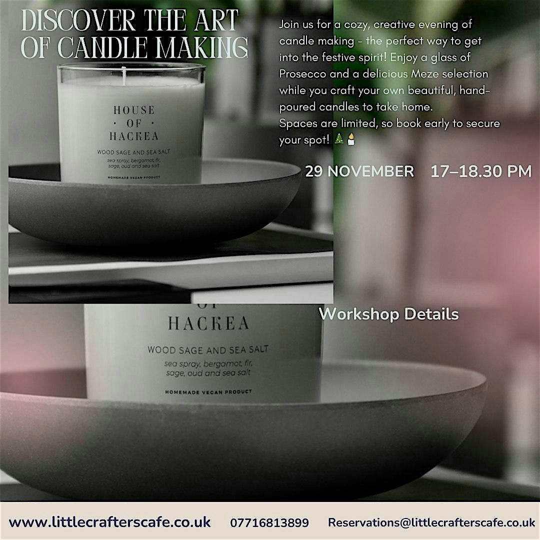 Come join us at Little Crafters Cafe for a fun and creative evening learning the art of candle making! Sip on a glass of fizz and enjoy some delicious Meze while our expert instructors guide you through the process of creating your very own unique candles. Whether you're a beginner or a seasoned crafter, this event is perfect for anyone looking to unwind and get crafty. Don't miss out on this fantastic opportunity to learn a new skill and socialize with fellow candle enthusiasts. Book your spot now!