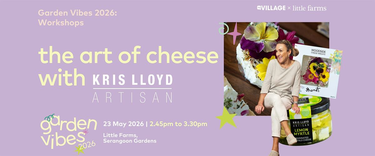 The Art of Cheese – A Garden Tasting with Kris Lloyd is an intimate outdoor experience at myVillage during Garden Vibes, showcasing award-winning artisan cheeses and bold, creative flavour pairings. Discover Kris Lloyd’s story and modern cheesemaking artistry, with honeycomb pairings and a beautiful garden setting of cheeses, flowers and herbs ✨