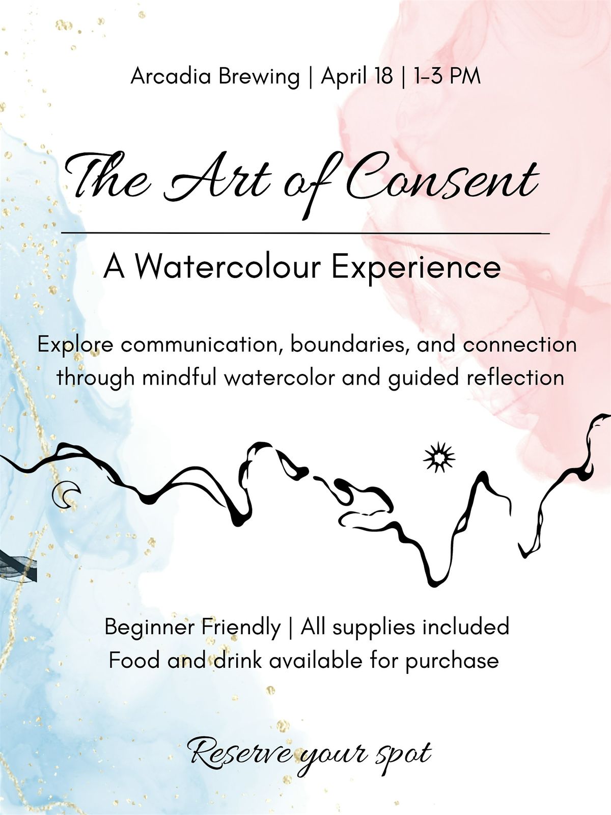 Join us for The Art of Consent, a beginner-friendly watercolour workshop and community building event! In this abstract painting session, facilitators will guide you through a mindful art practice as you consider the flow of consent before, during, and after intimacy. All of the art supplies you need will be provided, and snacks and drinks are available for purchase from Arcadia Brewing! Please note that the event will take place in the upstairs loft area. The first 10 tickets are available at 10% off!