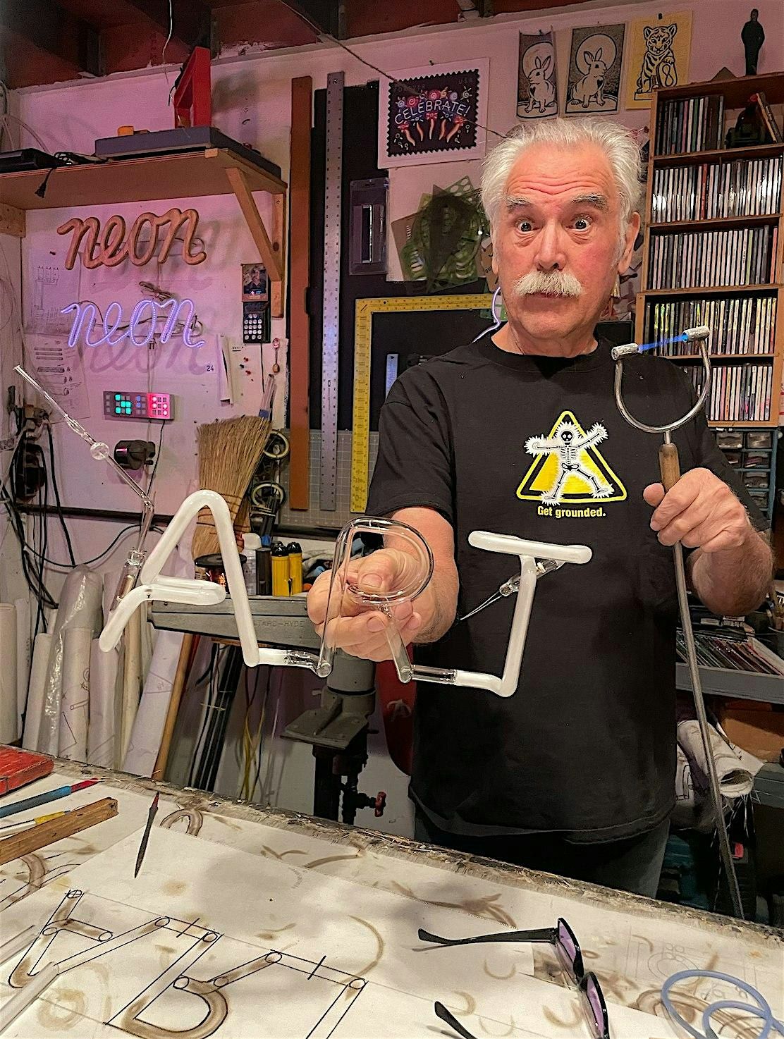 Join us Sunday, March 22nd for a Curio Club LA exclusive tour of local, San Fernando Valley, Neon artist Michael Flechtner's studio. Michael has been working as a neon artist for nearly 4 decades. His art has been featured in several museums and gallery shows around the country, as well as internationally. He is on the board at the Museum Of Neon Art in Glendale, where he has an incredible solo show up through June 7th; learn more about that show HERE. He has been commissioned to create and fix several neon pieces around LA and elsewhere. During this event, Michael will give us a full tour of his private studio where he creates all his Neon works of art. He will then give us a live demo, in which he will create a fully functional piece of neon before our very eyes. Attendees will have the opportunity to bend their own piece of neon glass tubing, which they will get to take home as a souvenir.
