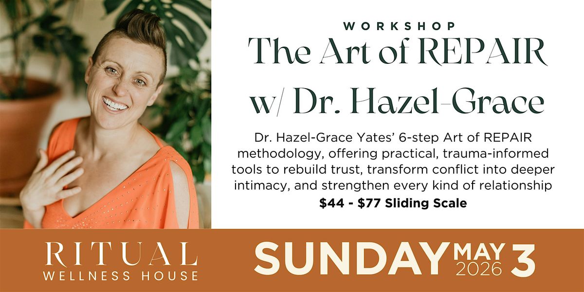Imagine a roadmap to harmony, a toolkit of resilience, and a foundation of confidence. This workshop revolves around the transformative power of Dr. Hazel-Grace’s revered 6-step Art of REPAIR methodology. This is the most up to date conflict repair process that weaves somatics, trauma awareness, neuroscience, and attachment theory. Discover the art of repairing conflicts, rebuilding trust, and reuniting in deeper intimacy.