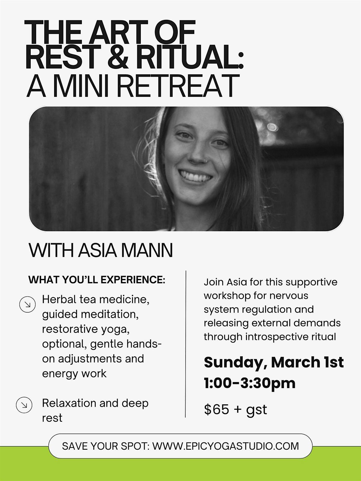 The Art of Rest & Ritual is an immersive, in-person experience designed to gently guide participants back into their bodies, their breath, and their inner landscape. This workshop weaves together herbal medicine, meditative inquiry, restorative yoga, and hands-on body and energy work to create a conscious container for deep rest, introspection, and nervous system nourishment.