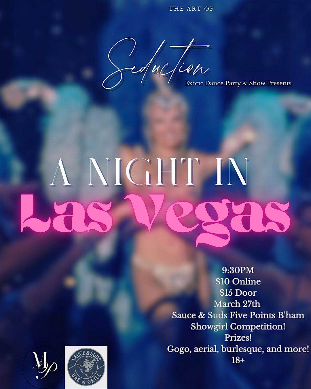 The Art of Seduction is an exotic dance party/rave featuring aerial performances, gogo, and burlesque. It's a space where everyone can come in and express themselves, feel comfortable within their bodies, and have fun! The dance floor will open at 9:30pm! The closer to the front you are the more likely you are to receive performer interactions! At 9:45pm we will welcome everyone and officially kick off the party by introducing our ambient and go go performers! Everyone will dance and engage in life's pleasure until 10:30pm when we will have our audience showgirl costume contest! Winner receives a gift bag full of naughty treasures and then some! After we will have more performances and dancing! At 11:30 we will have our final performances of the night. After the show the dance floor will remain open.