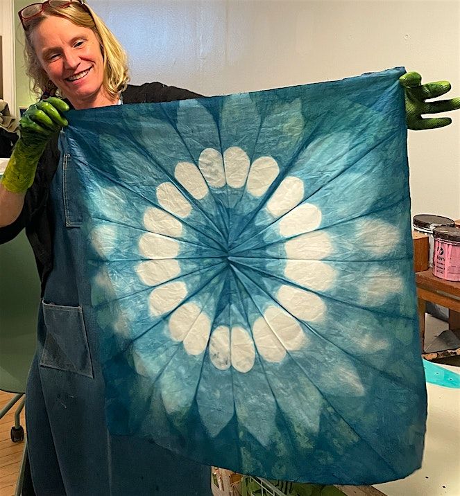 In this workshop, we’ll experiment with the different techniques of Shibori (a Japanese dye technique where fabric is folded, twisted, and bound to create patterns before being dipped into dye) to create unique patterns and shades of Indigo blue. The binds in the fabric will resist the dye, creating beautiful and interesting patterns with different shades of blue.