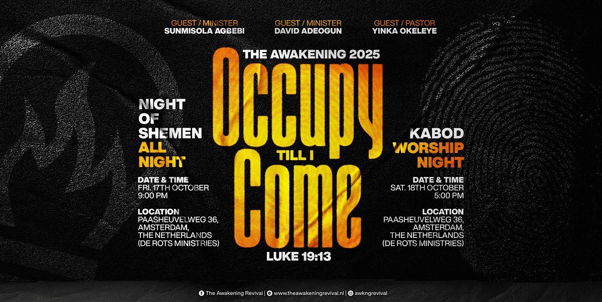 The Awakening Revival Conference for 2025 is centered on the theme of sustaining revival and gaining a deeper understanding of our purpose and identity as God's children. This year's vision is to cultivate growth, maturity, and a steadfast foundation in our faith while bringing nations under the Lordship of YHWH. The theme of this year is “OCCUPY TILL I COME”. Luke 19:13 (KJV)