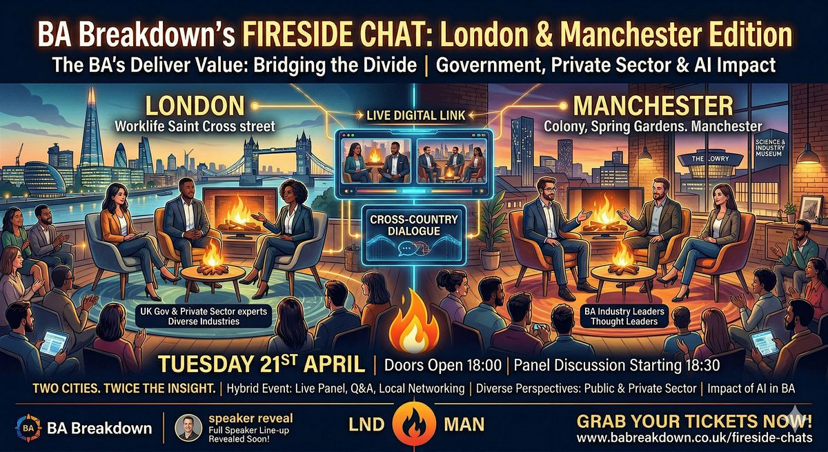 Join us in person for the BA Breakdown's Fireside Chat edition! Not only is this the first of our panel discussion evenings, but we are also crossing the North / South divide and linking up two power house cities of the UK - London and Manchester.