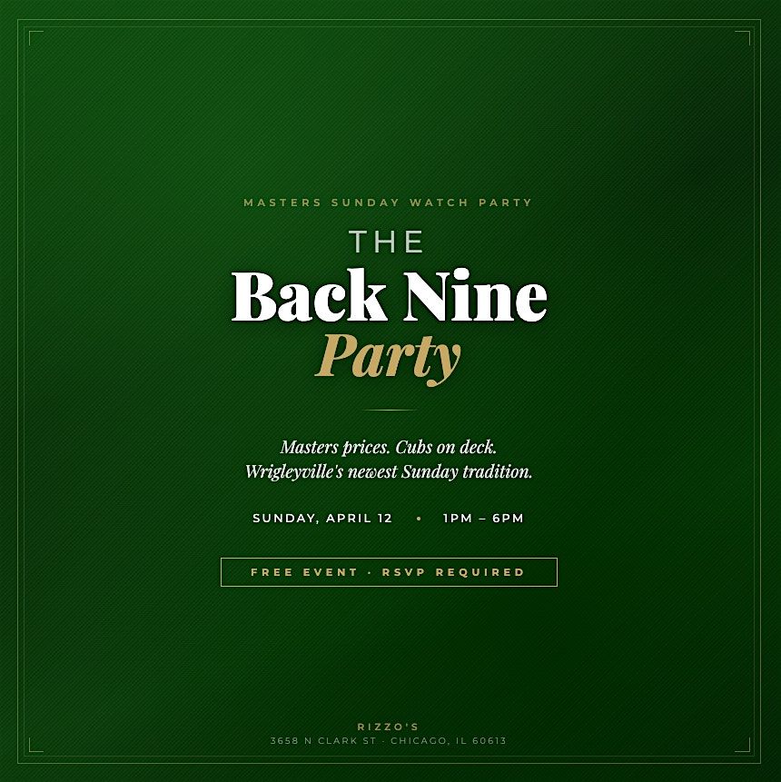 Join us Sunday, April 12th for The Back Nine Party at Rizzo's — a free, all-afternoon watch party for the final round of the Masters, right in the heart of Wrigleyville.