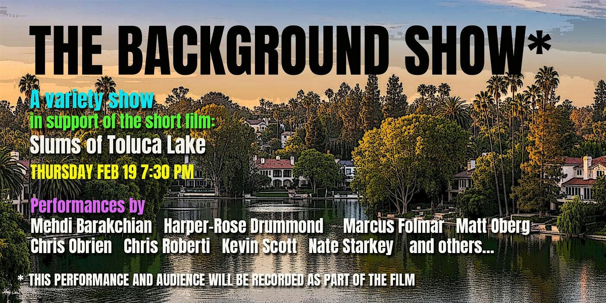 The Background Show, is a variety show consisting of music, standup, improv, and other surprises intended to raise money for the production of the short film--Slums of Toluca Lake!