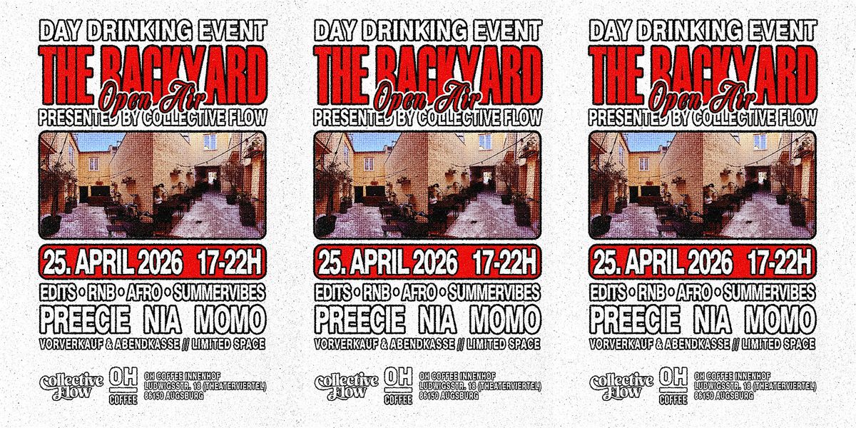 THE BACKYARD — Day Drinking Open Air by Collective Flow. 17–22h | RnB, Afro, Edits & Summervibes im Oh Coffee Innenhof, Ludwigsstr. 18, Augs