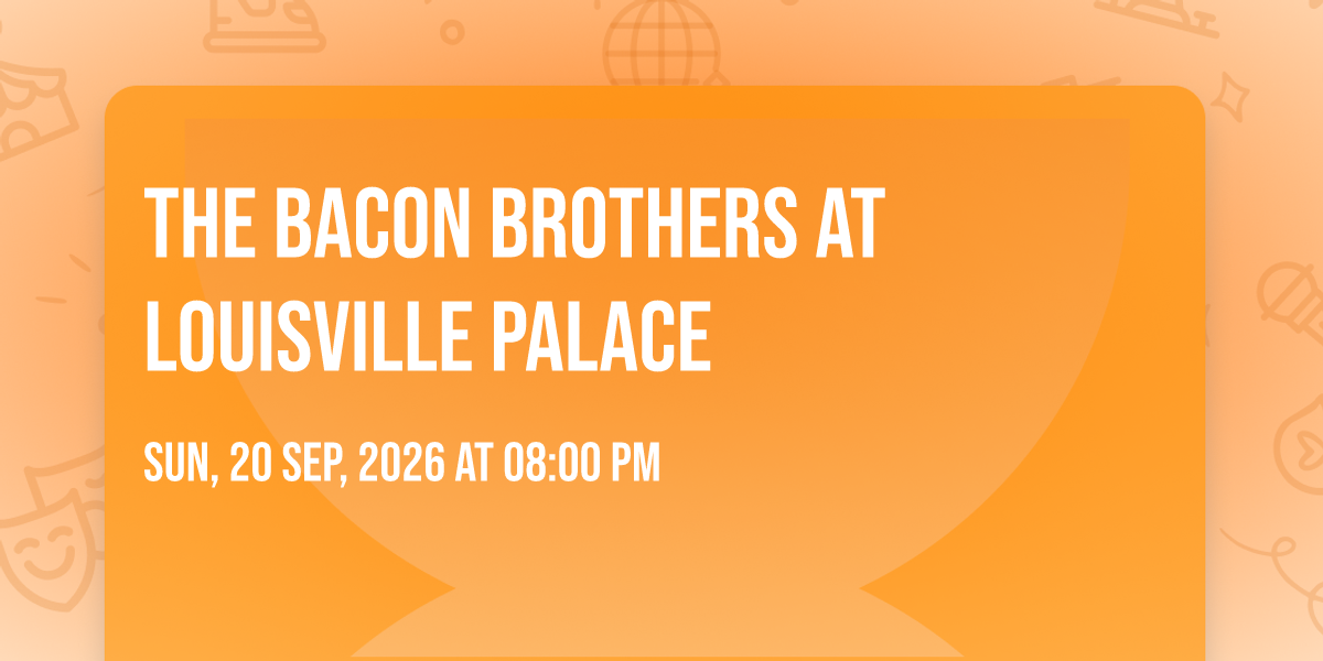 ✨ Experience the magic of The Bacon Brothers at Louisville Palace, where moments become memories that last a lifetime! 🏛️ The iconic Louisville Palace in Louisville, KY sets the perfect stage for an unforgettable celebration on September 20th, 2026 at 08:00 PM. 🌟 It's been a curated experience that brings together the best of entertainment and innovation, creating an atmosphere of wonder and excitement. From the moment you arrive, you'll be immersed in a world where the ordinary transforms into the extraordinary. 🎊 Book early to secure your place in what promises to be an event that will be talked about for years to come!