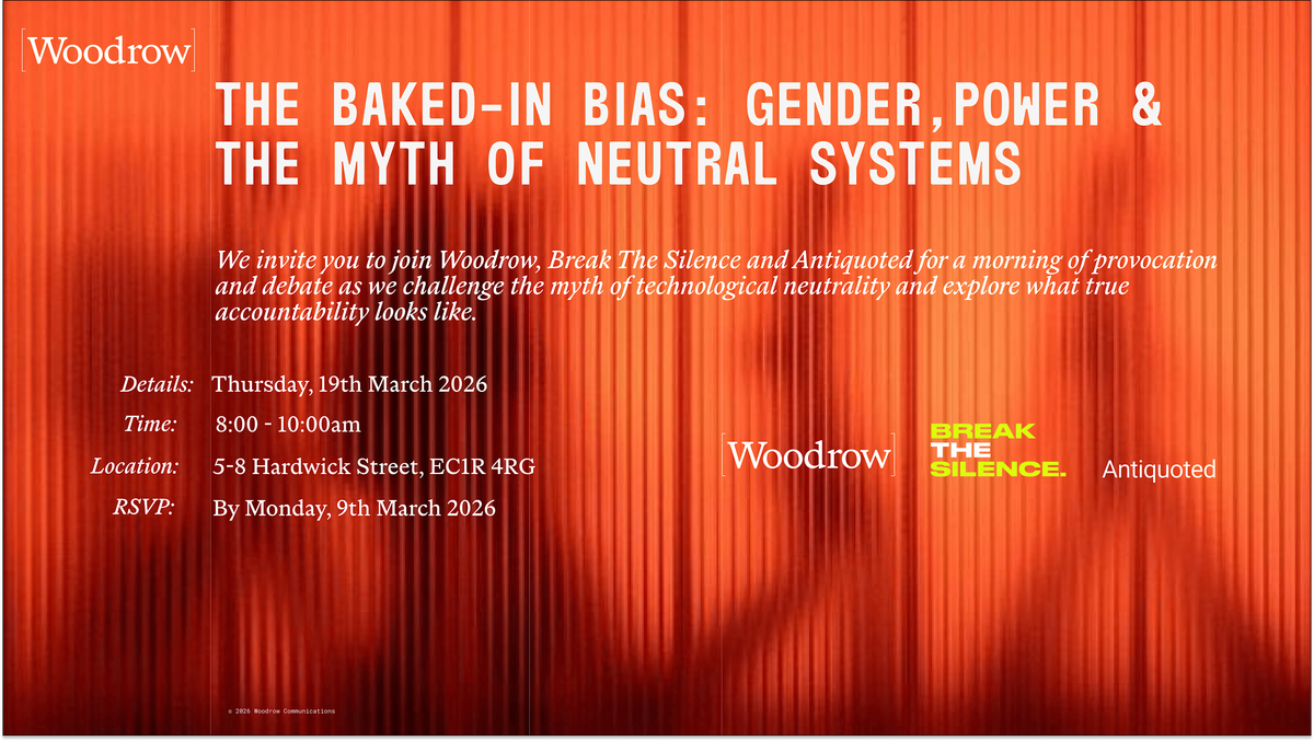 From the algorithms that shape our reality to the products that decide who gets heard, digital systems reflect the blind spots of those who build them. Join Woodrow, Break The Silence and Antiquoted for a morning of provocation and debate as we challenge the myth of technological neutrality and explore what true accountability looks like.