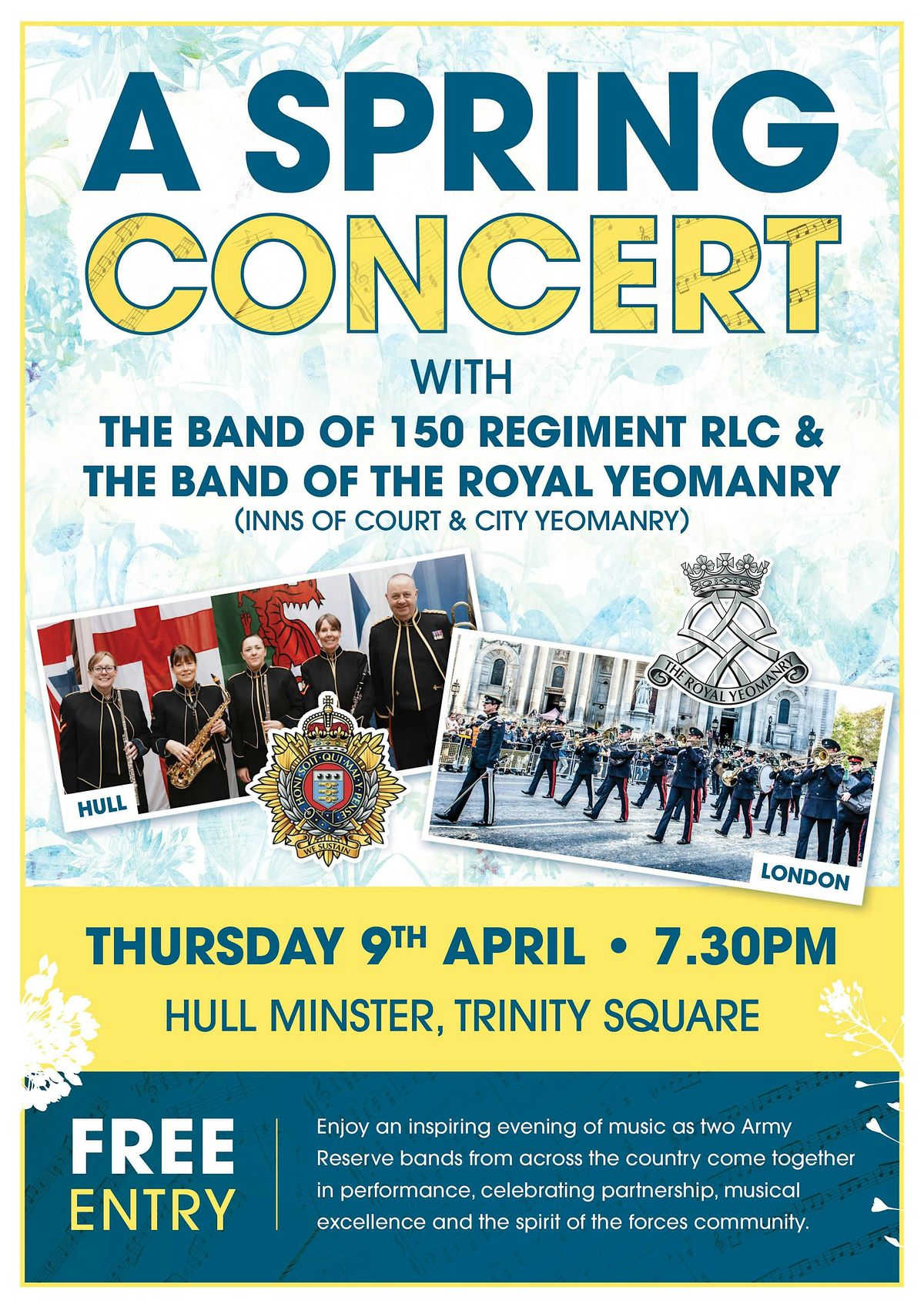 Join us for a joint concert betwen The Band of 150 Regiment RLC & The Band of The Royal Yeomanry (Inns of Court & City Yeomanry)