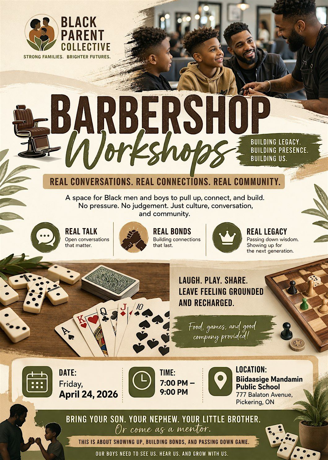 This is where connection is intentional. Where mentorship happens naturally. Where generations come together—not just to talk, but to listen, learn, and grow. Whether you’re a father, uncle, big brother, mentor—or a young person finding your way—this space is for you.