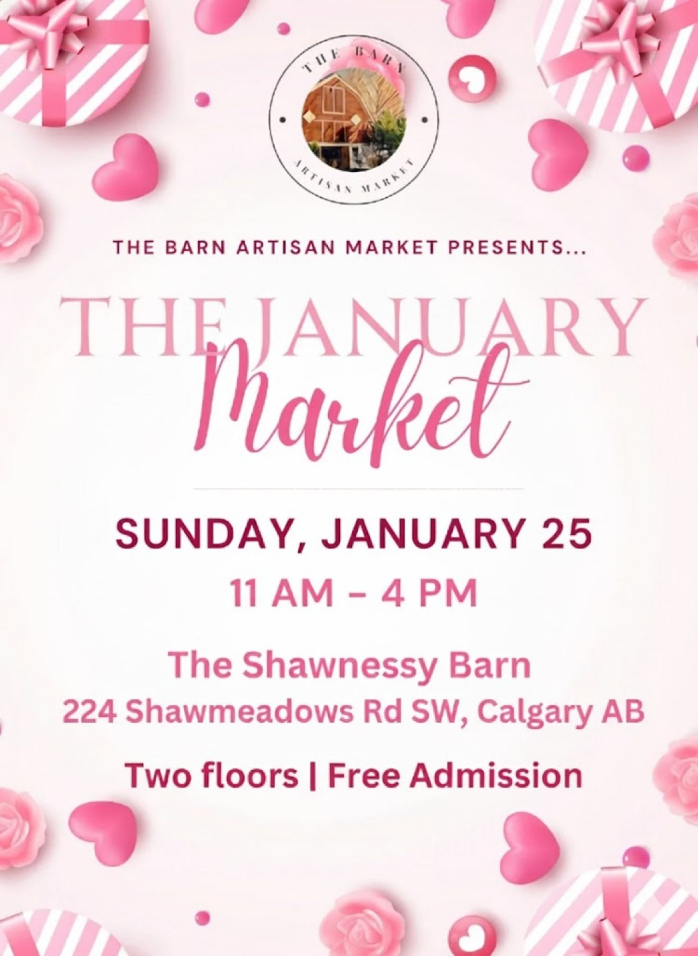 Our first market of the year is taking place on Sunday, January 26th at the historic Shawnessy Barn. Come help us kick off the new year, as we feature a brand new line-up of local artisans, crafters, creators, and makers. Get out of the winter cold and into the cozy atmosphere of The Barn Artisan Market! You can even find a great gift for your Valentine while you're here. <3 There's two floors of vendors for your shopping enjoyment, and admission is always free!