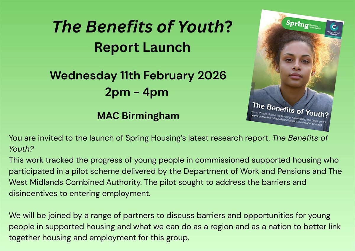 We will be joined by a range of partners to discuss the challenges and opportunities for young people in supported housing, and what we can do as a region and as a nation to better link together housing and employment for this group.