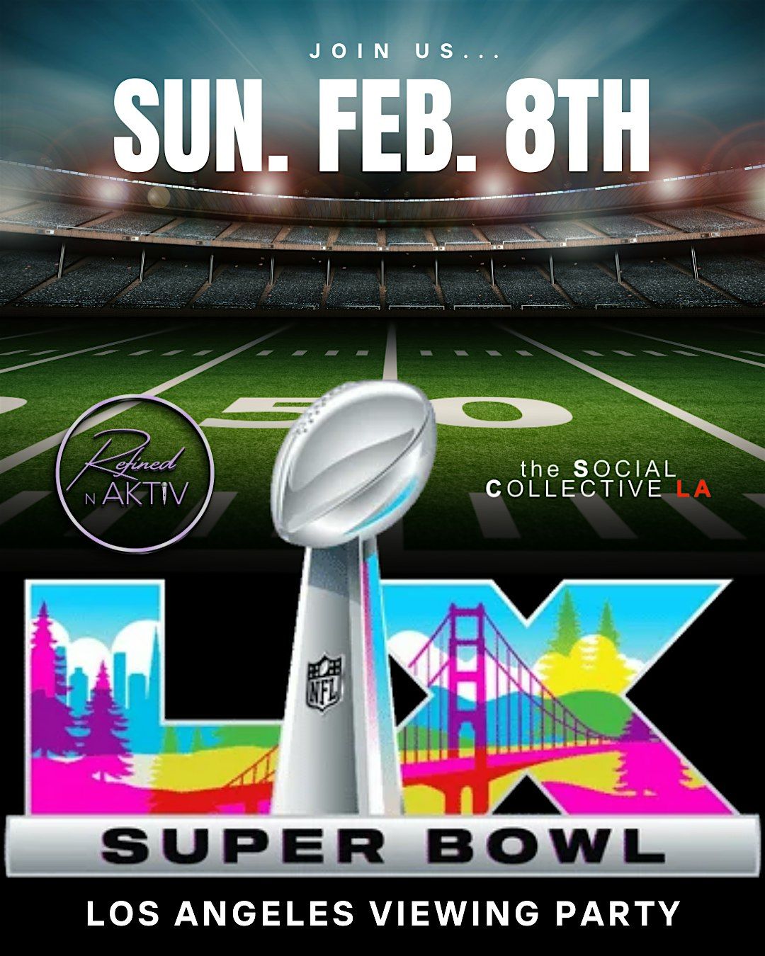 The collab that never misses is back to bring you The Best Damn Super Bowl Viewing & Day Party! Social Collective LA x Refined N Aktiv are back at it again bringing you the only place to watch Super Bowl LX in Los Angeles.