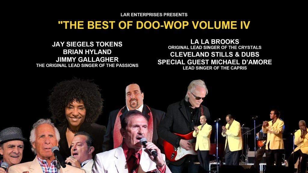 LAR ENTERPRISES presents The Best of Doo-Wop Volume IV starring Jay Siegels Tokens---The Lion Sleeps Tonight' Brian Hyland---"Sealed With a Kiss," Jimmy Gallagher's Passions---"Just To Be With You," LA LA Brooks Original Lead Singer of The Crystals "Da Doo Ron Ron," Cleveland Stills Dubs "Could This Be Magic" with special Guest Michael D'Amore, lead singer of The Capris