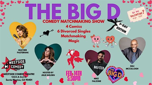 Divorced? Separated? Consciously Uncoupled?Teetering on the edge? Divorce-curious? Looking to date a divorced human? Is your New Year’s resolution to get out of your comfort zone?? Ditch the apps?? Find a fun new way to meet people?? And laugh so hard along the way, you get a good a ab workout? Then the Big D at The Westside has got you covered!! 2025-Let’s gooo!!!!!!