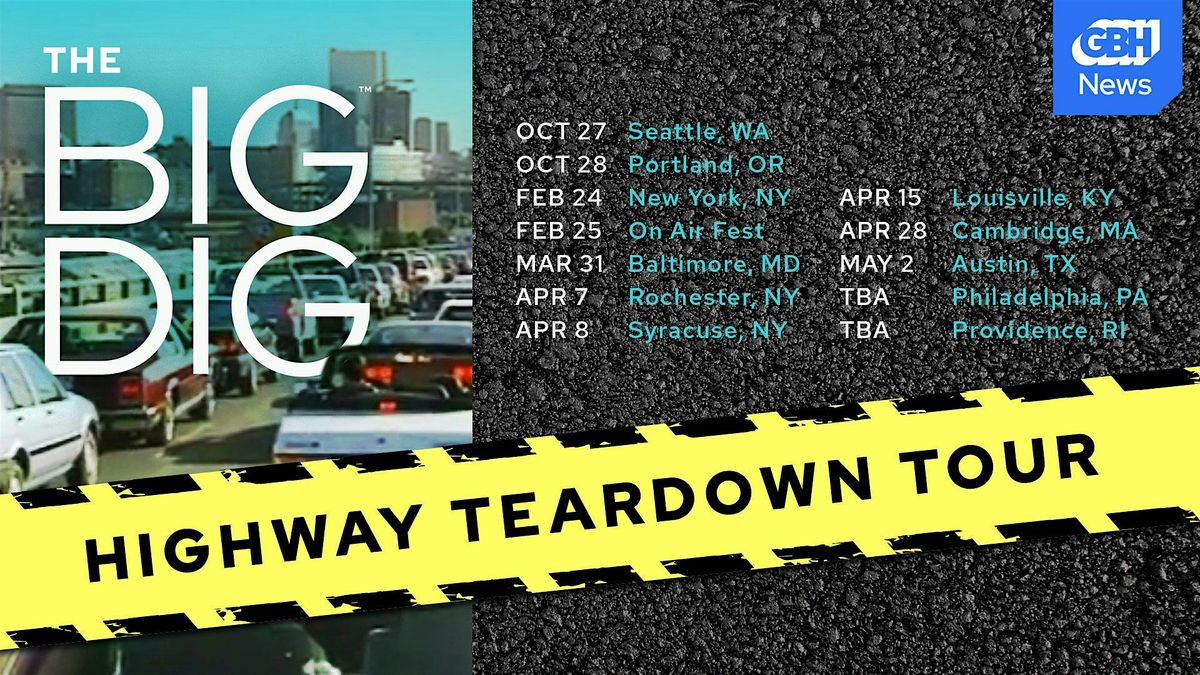The live taping will be released as part of a new season of the podcast called The Highway Teardown tour, in which host Ian Coss visits other American cities struggling with highway challenges of their own. More about the whole tour at wgbh.org/bigdiglive.