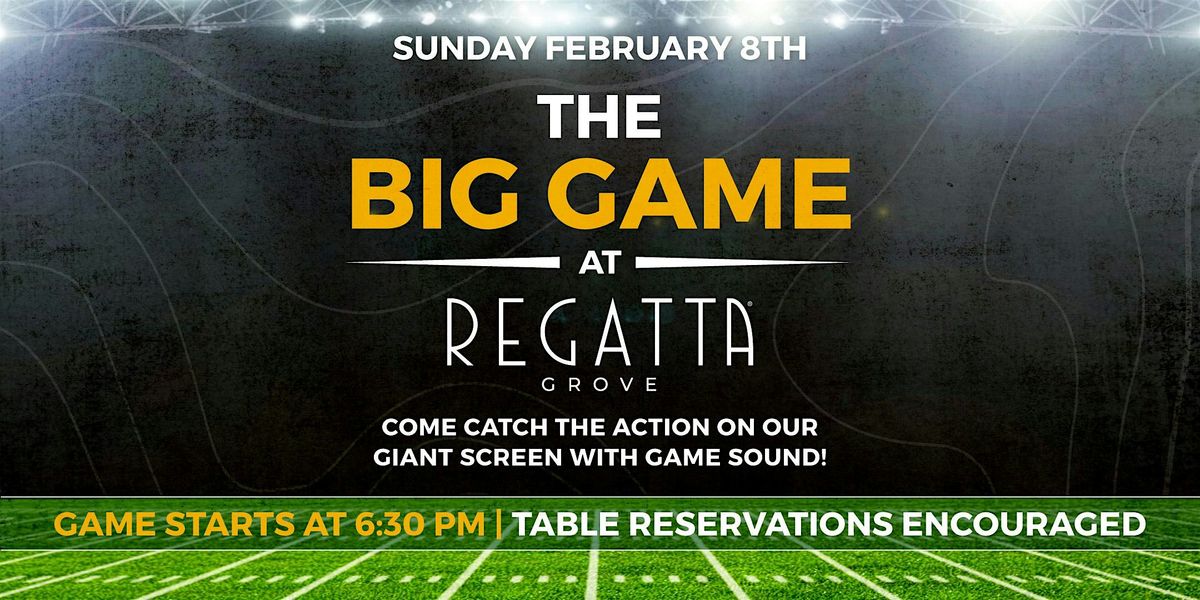 Sunday, February 8th, join us at Regatta Grove for the ultimate Big Game Watch Party! Set sail with us for an elevated viewing experience like no other and catch all the action of The Big Game on our GIANT screens, complete with game sound, all while being surrounded by panoramic waterfront views