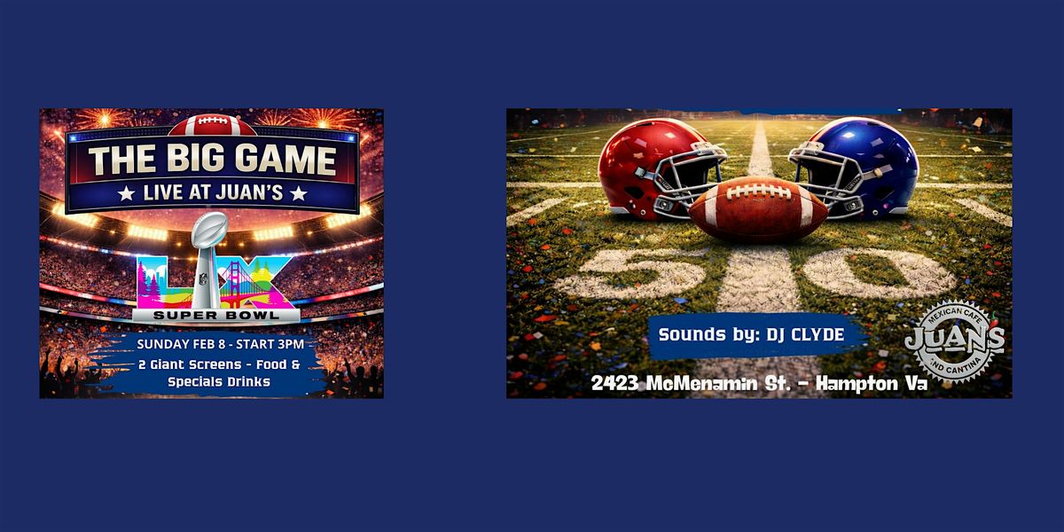 Welcome to The Big Game Live at Juan's! Join us at 2423 McMenamin St on February 8, 2026 at 3:00 PM (Eastern Time) for an epic night of sports and fun. Get ready to cheer on your favorite team and enjoy the game with fellow fans. Don't miss out on this exciting event!