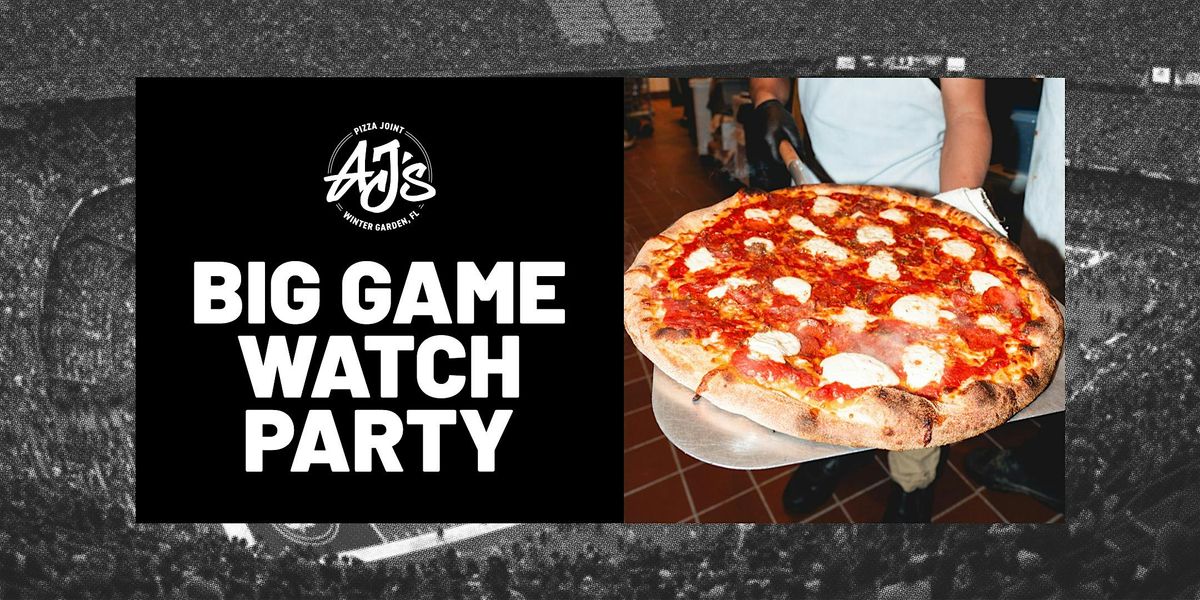 We’re Throwing Down For The Big Game The Only Way We Know How: Slinging Pies. Come Post Up At AJ’s With A Buddy To Enjoy Crispy Slices, Hot Whole Pies, Cold Drinks, And The Big Game On The Screens.