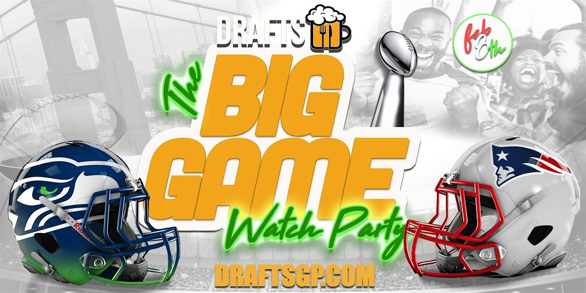 TH BIG GAME WATCH PARTY @ DRAFTS! WATCH THE SEATTLE SEAHAWKS VS THE NEW ENGLAND PATRIOTS ON SUNDAY FEB 8TH WITH HAPPY HOUR DRINKS AVAILABLE