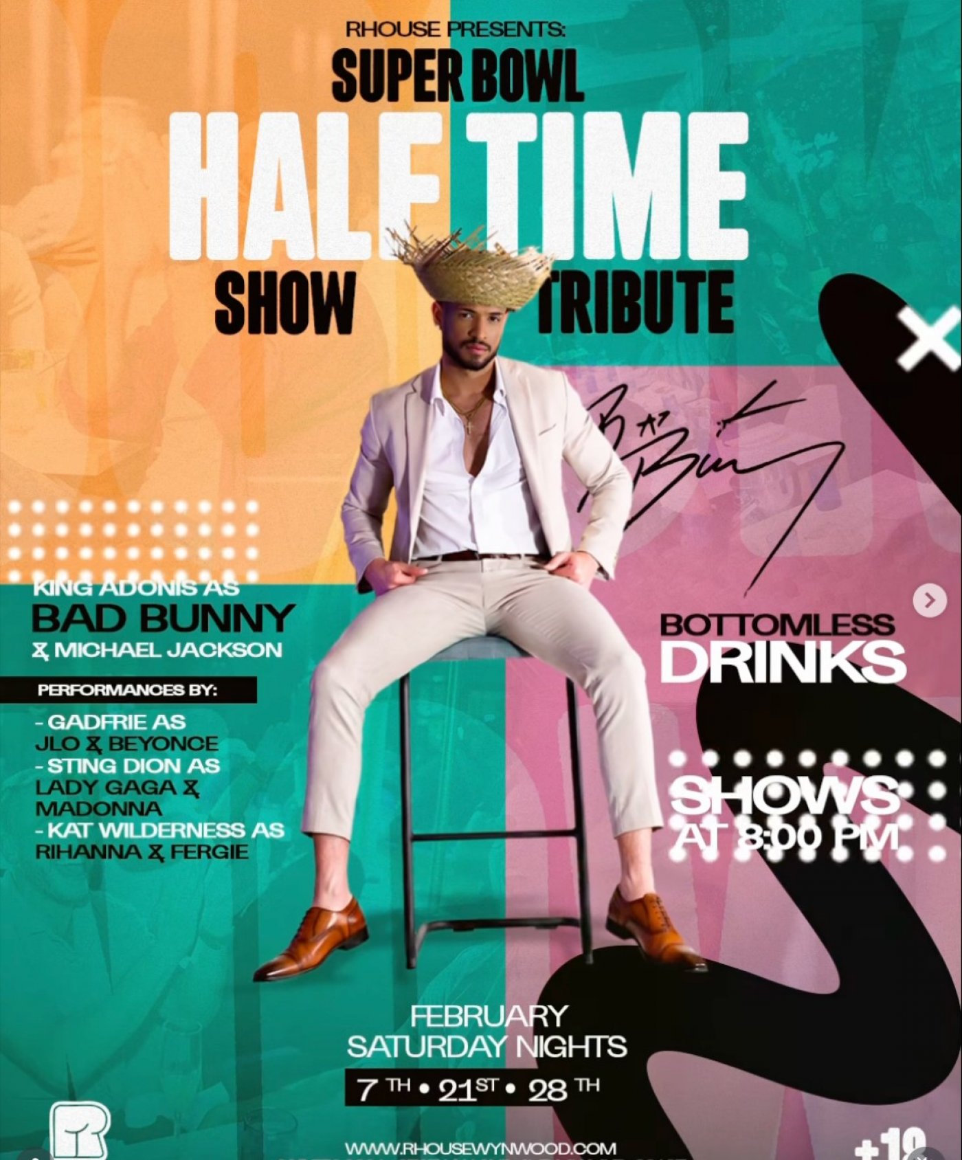Inspired by this year's special halftime featuring global star Bad Bunny, and also by the infamous halftime show that is now a staple of the world-famous R House Drag Brunch.