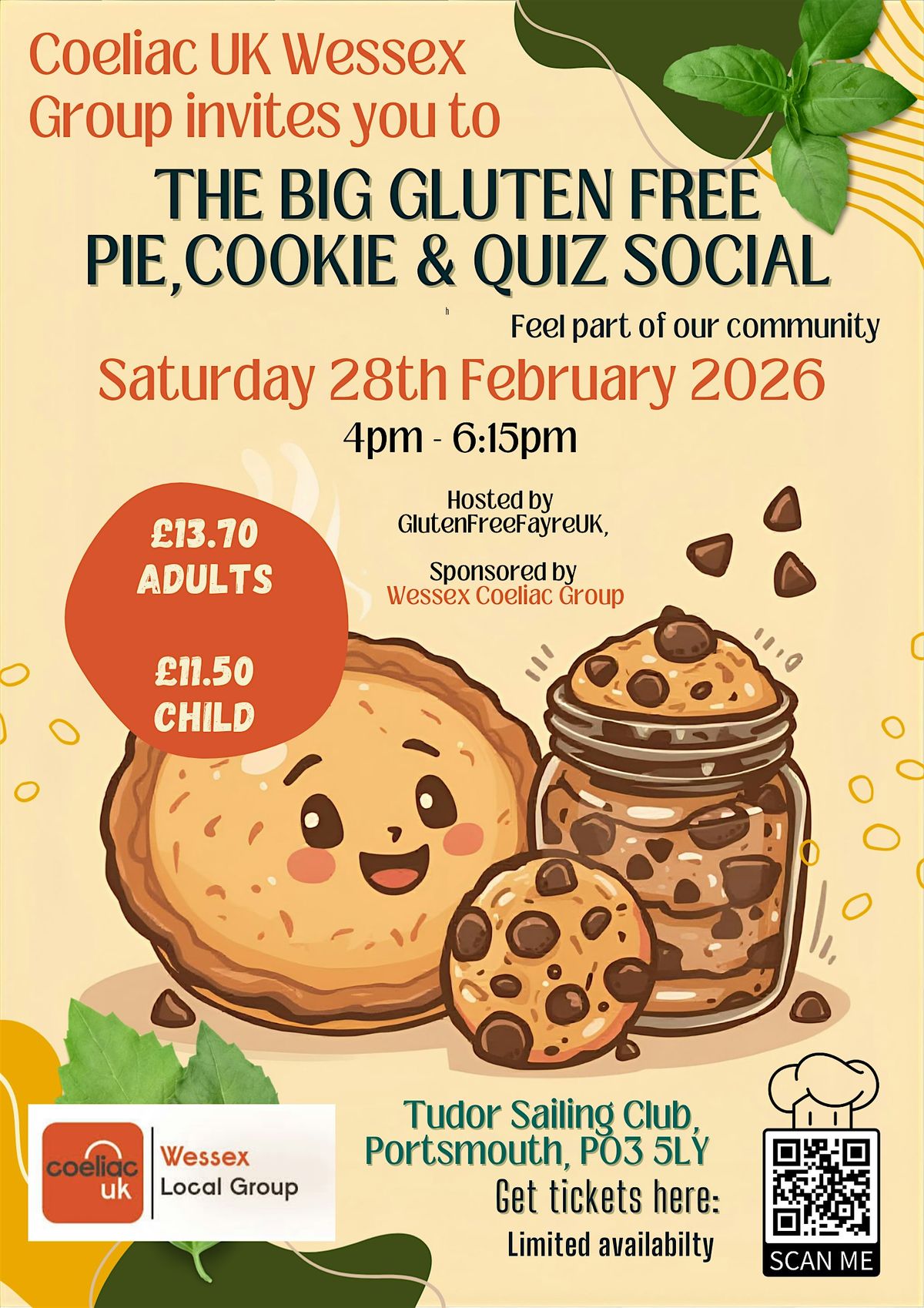 🥧 The Big Gluten Free Pie, Cookie & Quiz Social Join us for a cosy, fun-filled gluten free evening bringing the coeliac community together over delicious pies, sweet cookies, and a brilliant quiz! Whether you’re newly diagnosed, a seasoned gluten free pro, or just love great food and good company, this event is all about connection, laughter, and feeling understood — without worrying about gluten.