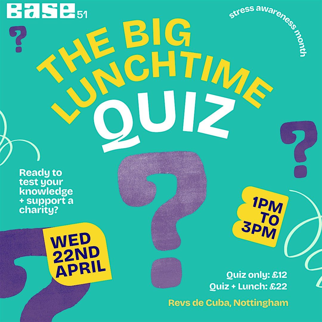 We're hosting The Big Lunchtime Quiz, perfect for giving your lunch a level up, networking, team bonding and having fun all whilst supporting Base 51 charity!