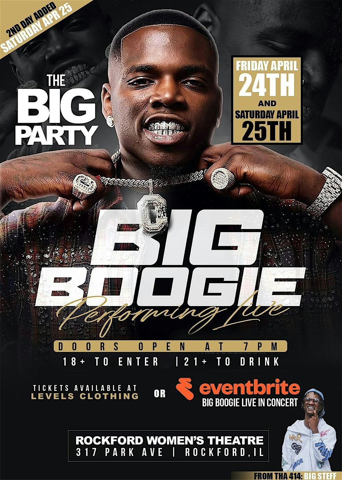Big Boogie brings a high-energy, crowd-commanding performance that turns every show into a full experience. Expect a packed venue, major energy, and one of the biggest nights Rockford will see this spring.