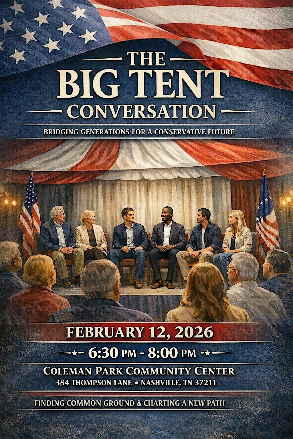 With panelists from the Baby Boomer generation, young republicans, and college-age conservatives, the goal is simple: listen, learn, and find common ground. Attendees are encouraged to come with a listening ear, an open heart, and mutual respect taking what is valuable, setting aside what is not, and focusing on how we move forward together.