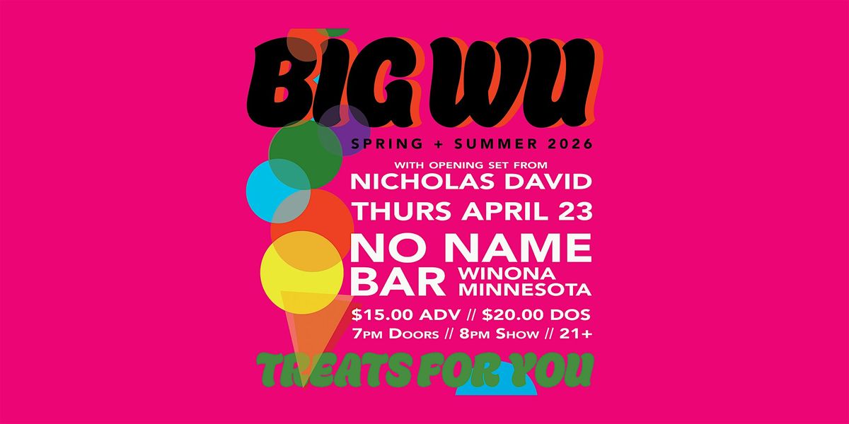 The Big Wu is bringing their unique sound to No Name with opener Nicholas David this spring! Enjoy this rare opportunity to catch these performers up close and personal in an intimate setting in Winona, MN.