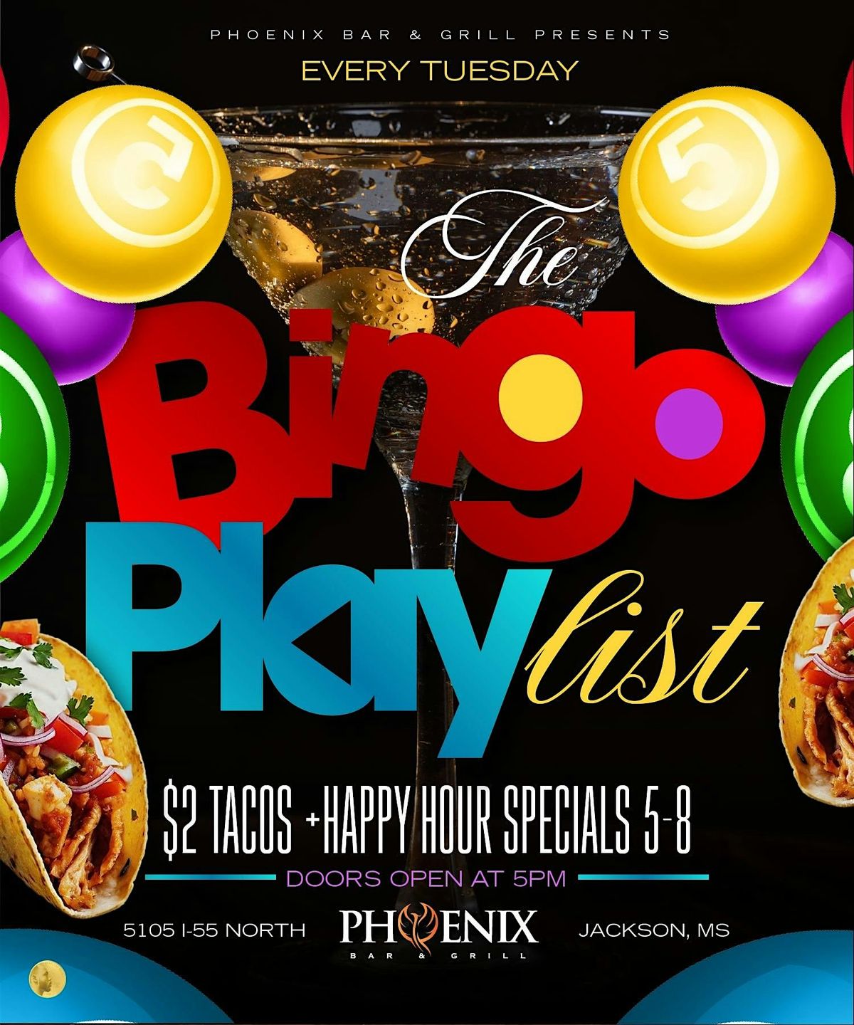 The Bingo Playlist by New York Sam takes place at Phoenix Bar and Grill. It flips traditional bingo by replacing numbers with songs, so instead of calling numbers, we’re singing, dancing, vibing, and competing all night long. From R&B to throwbacks and party classics, the music keeps the energy high and the crowd engaged.